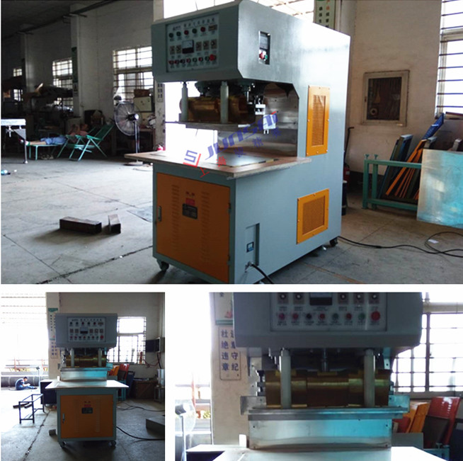 由圖片可看出操作平臺此同其設備視覺效果好,調節模具更方便,增加了U型槽的寬度及深度,并在U型槽兩側加裝了滾輪,對鎖模壓板的瘦身擴大焊接部分的操作空間,感應板的設計可方便地幫助用戶將膜材定位,高頻輸出銅片通過鋁板固定使其始終保持在高位,避免操作中較多材料被銅片劃傷現象,在控制部分加裝專用試模按鈕幫助操作員非常方便地對位,壓料及調試時的二次焊接,客戶通過與同其設備比較后反饋,這款設備操作更靈活了,對位方便了,拉大面積材料省力了,員工不會燙到手了,效率提高了。